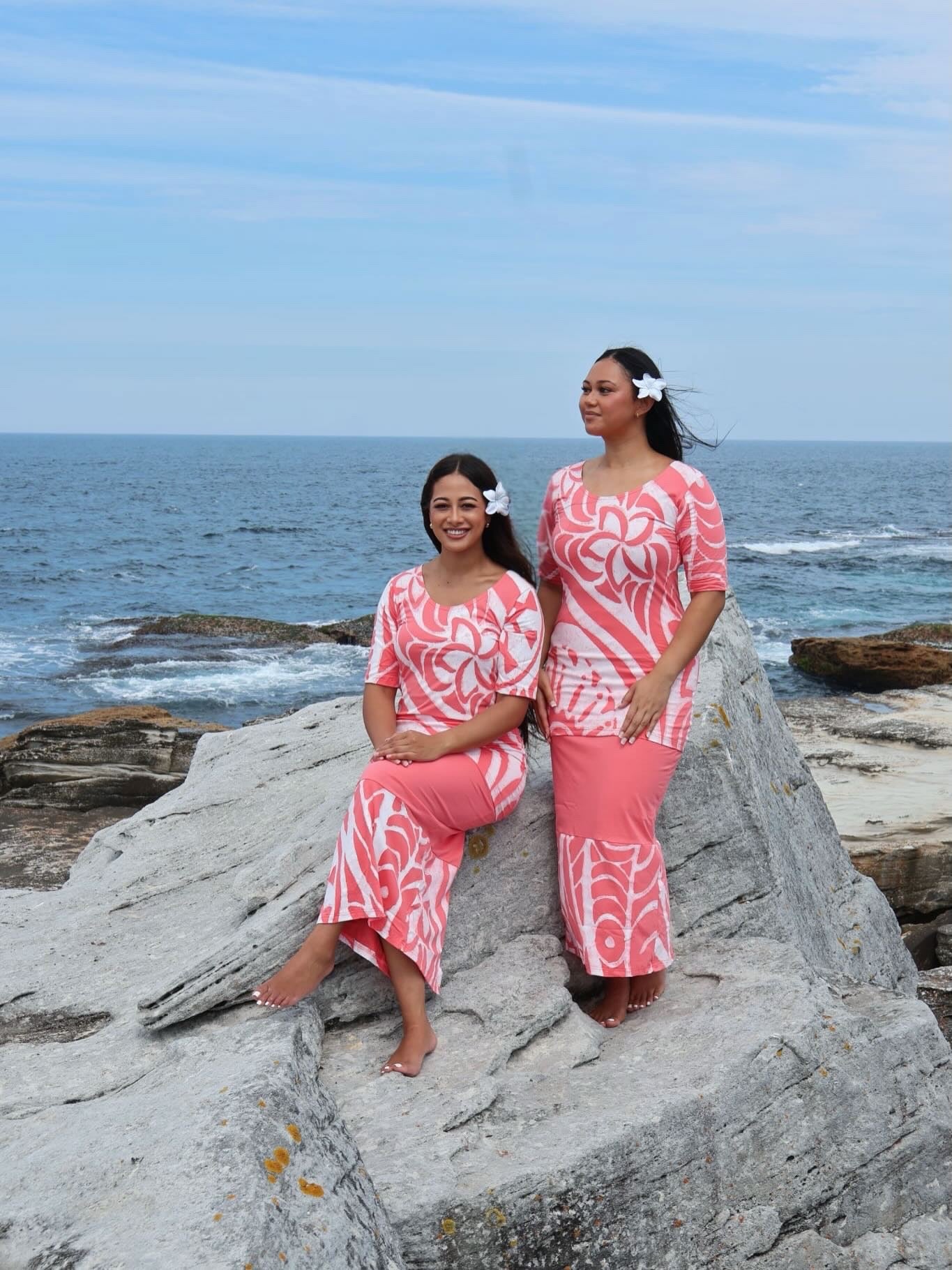 Pacific Ways Custom Collection with Pacific Island Art brings our beautiful Pink Elei Puletasi. Its vibrancy and color as well as quality is amazing.